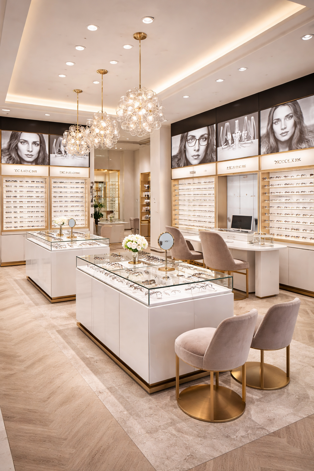 Diese exklusive Optik-Ladeneinrichtung nach Maß verbindet luxuriöses Design mit funktionaler Verkaufsfläche. Die Kombination aus eleganten Glasvitrinen, hochwertigen Oberflächen und warmen Lichtakzenten schafft eine stilvolle Atmosphäre, die Vertrauen vermittelt und die Präsentation von Brillen und Accessoires auf ein neues Niveau hebt.