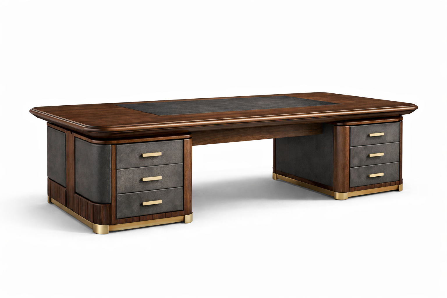 Signature Executive Chefschreibtisch – Maßgefertigtes Premium-Design aus Massivholz & Lederdetails